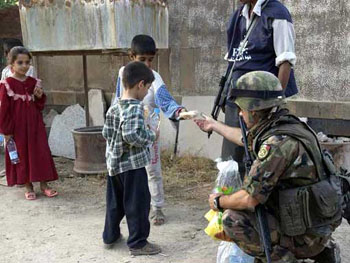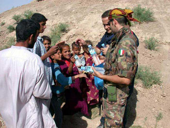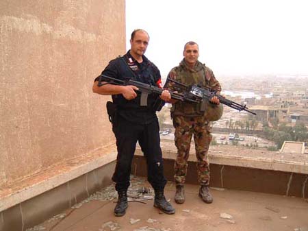 Sono attualmente schierati a Nassiriya circa 130 Fanti di Marina del reggimento San Marco, inseriti nell’Operazione “Antica Babilonia”. Di questi un’aliquota concorre al funzionamento e alla sicurezza delle comunicazioni radio, telefoniche e satellitari del contingente italiano in Iraq. Inquadrati nella “Task Force Volturno”, agli ordini del Maggiore dei carabinieri Carlo Iacuzio dell’MSU ( Multinational Specialized Unit), i Fanti di Marina operano in supporto ai Carabinieri nell’istallazione di ponti radio e di sistemi di comunicazioni in ambiente ostile. L’addestramento e l’esperienza maturata negli anni dal Reggimento San Marco nei teatri di crisi e di guerra, consentono oggi ai nostri “Marines” di operare in maniera efficace e flessibile in Iraq in compiti quali l’installazione e la gestione di sistemi di comunicazioni satellitari,l’ affiancamento ai Carabinieri MSU nel pattugliamento nei paesi e sulle strade e l’assistenza alla popolazione civile.